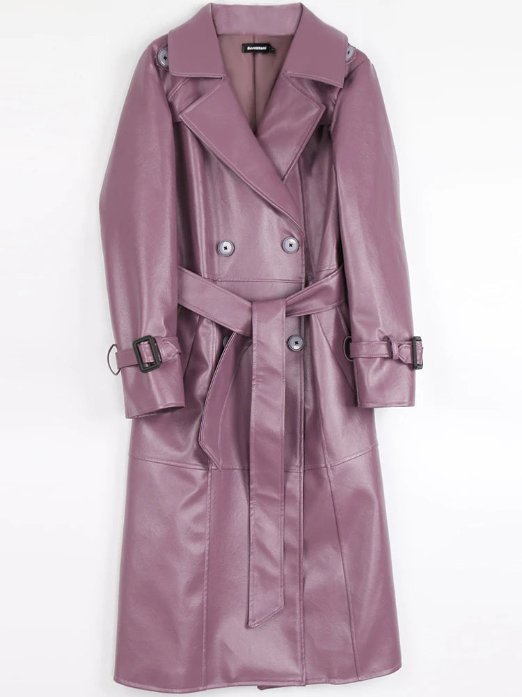 Women's Leather Nerazzurri 2-7XL Purple Designer Trench Coats (Plus Size)
