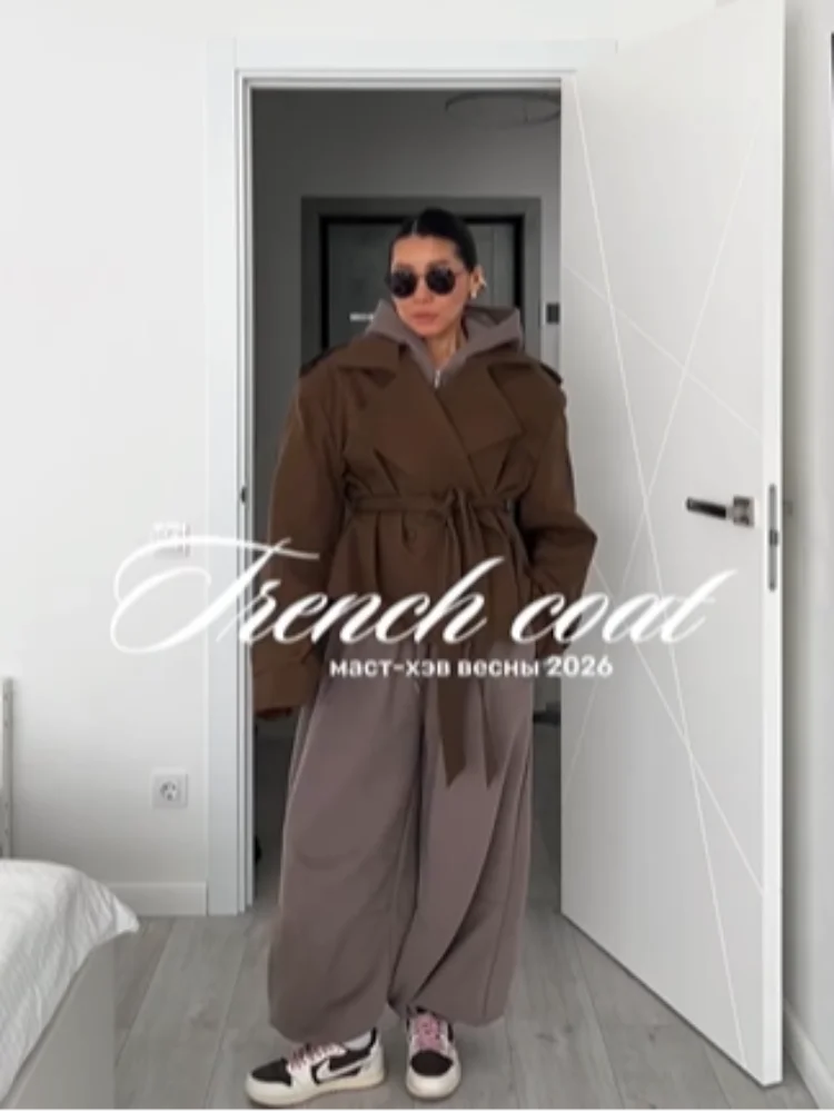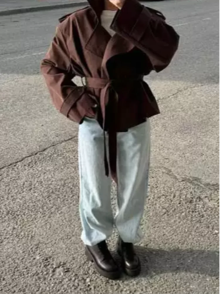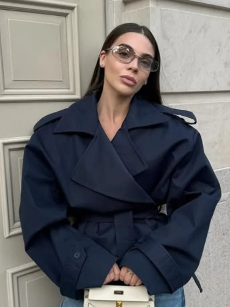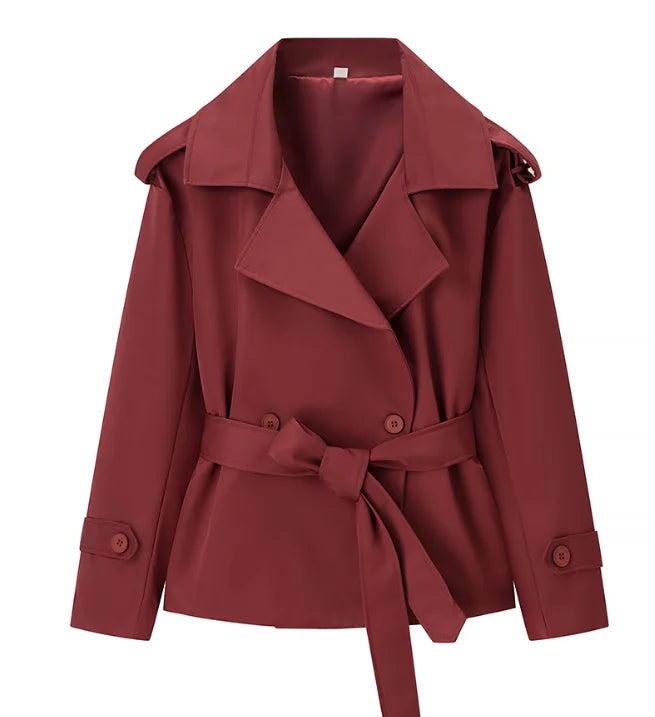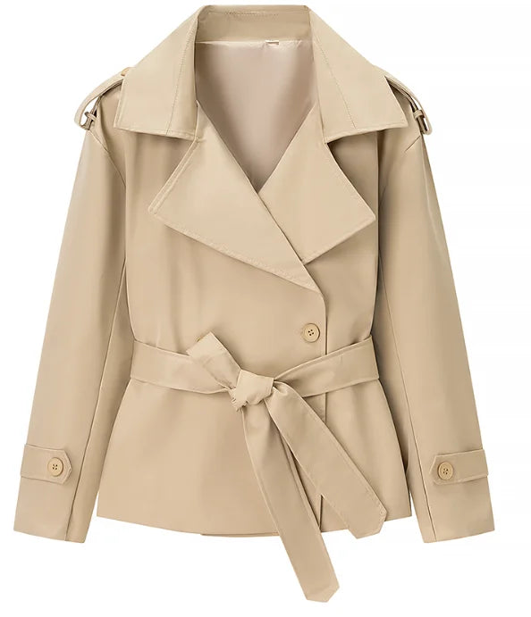 Women's Cropped Trench Coats Belted Fashion Designer XS-XL Jackets