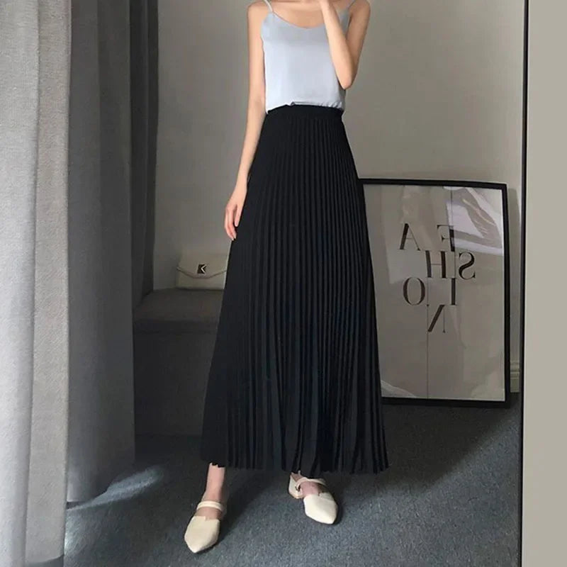 Women's Pleated Satin Fashion Designer A-Line Skirts (Long)