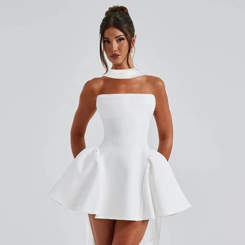 Women's Deep Plunge Fashion Designer Halter Mini S-L Dresses (Short)