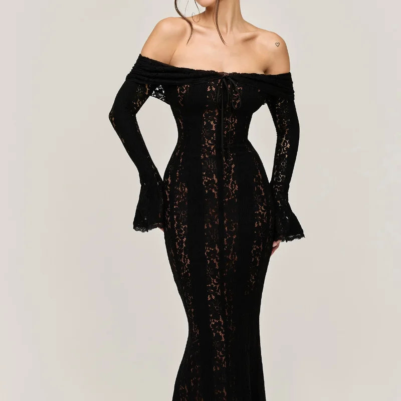 Women's Transparent Lace S-L Fashion Designer Dresses (Long)