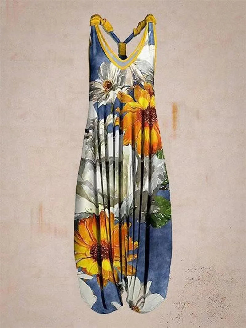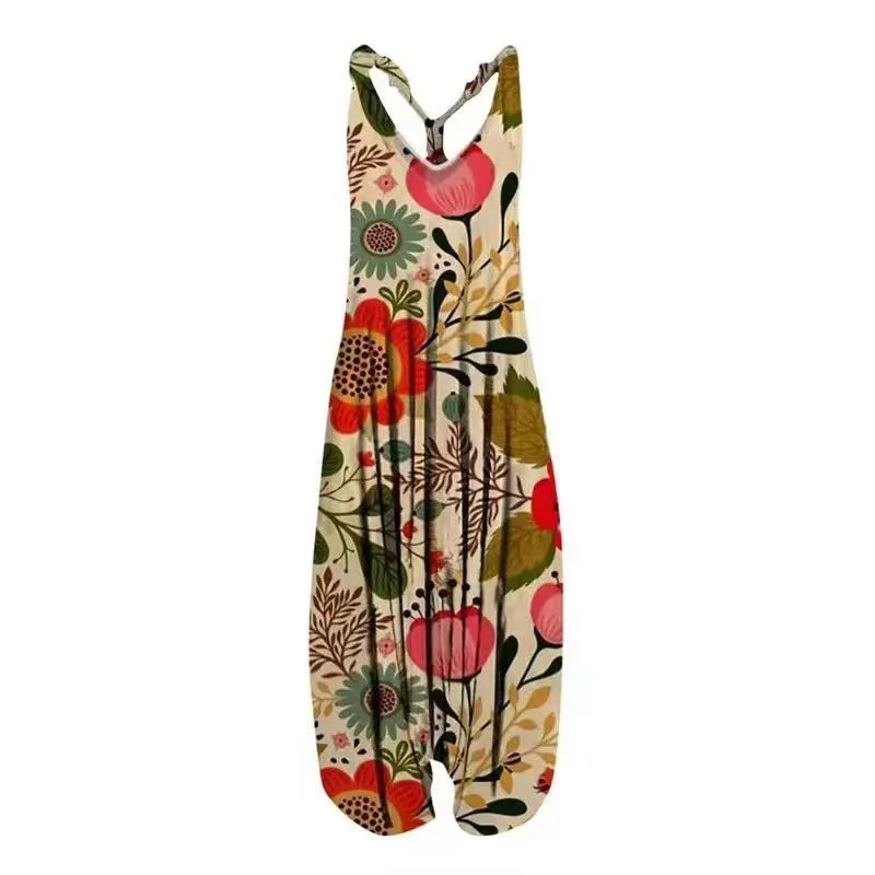Women's Floral Print 3-5XL Fashion Designer Jumpsuits (Plus Size)
