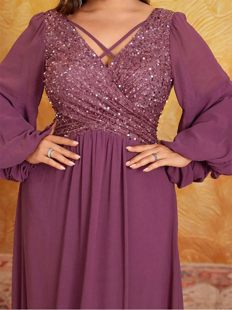 Women's 1-5XL Fashion Designer Sequin Chiffon Long Dresses (Plus Size)