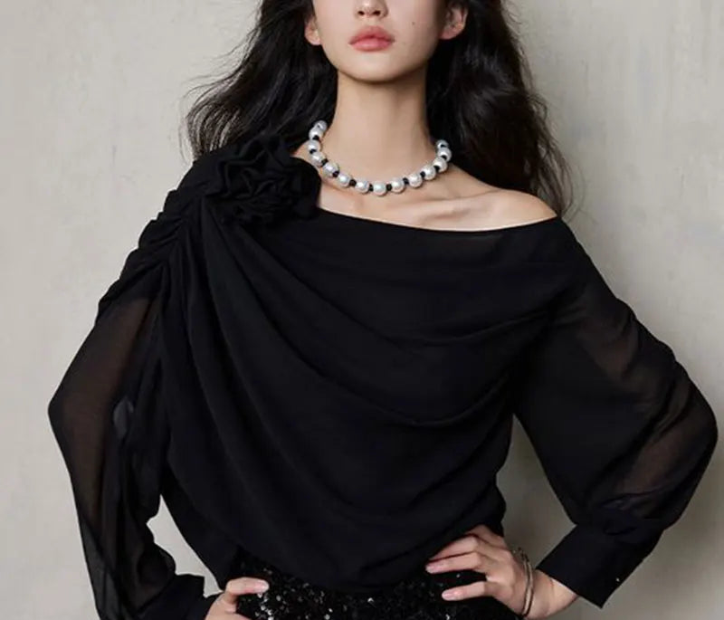 Women's Blouse Fashion Designer Ruffled Chiffon S-3XL Long-Sleeve Tops