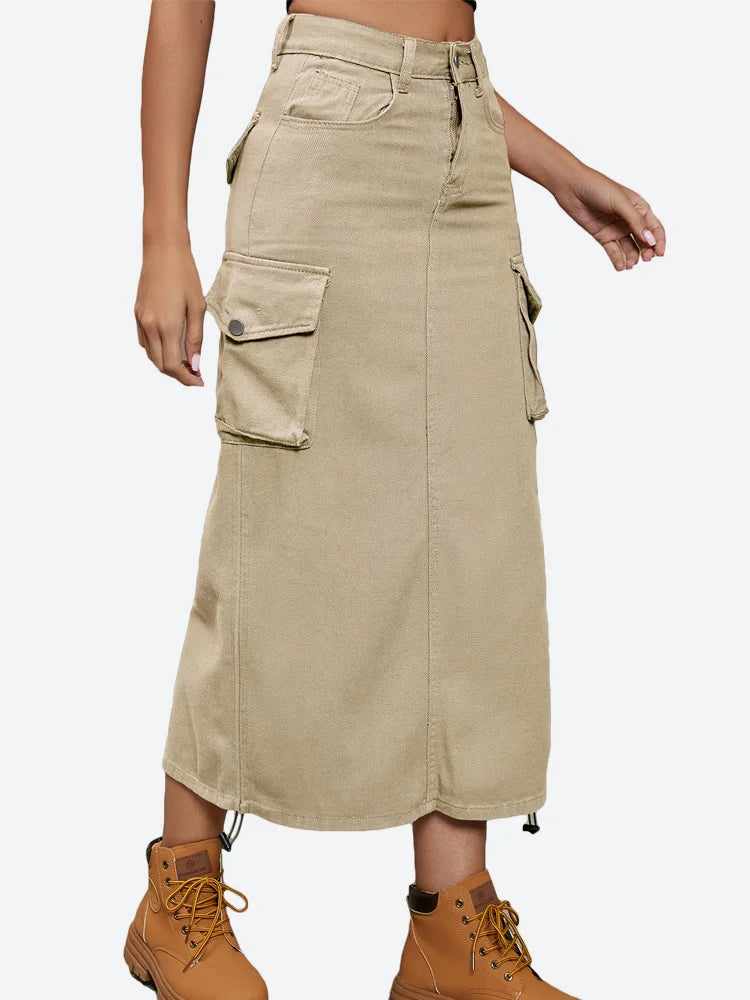 Women's Bodycon Fashion S-XL Designer Cargo Drawstring Skirts (Long)