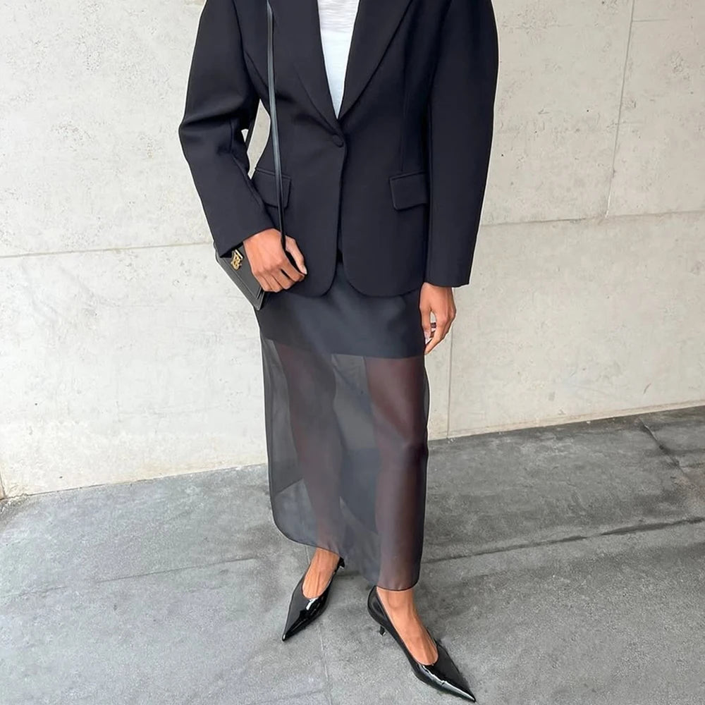 Women's High Waist Slit S-XL Fashion Mesh Skirts (Long)