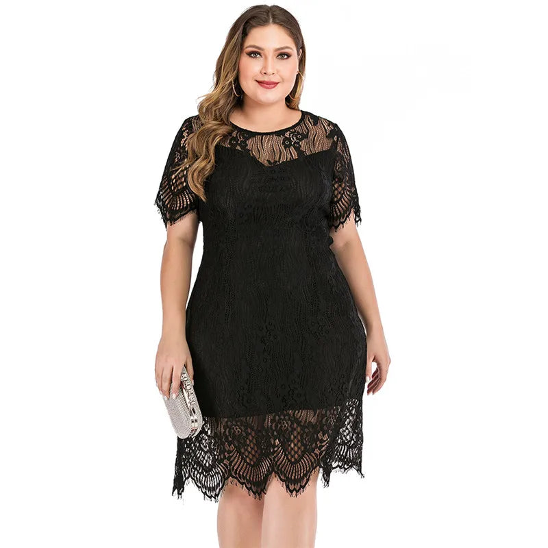 Women's Lace O Neck 2-4XL Fashion Designer Short Dresses (Plus Size)