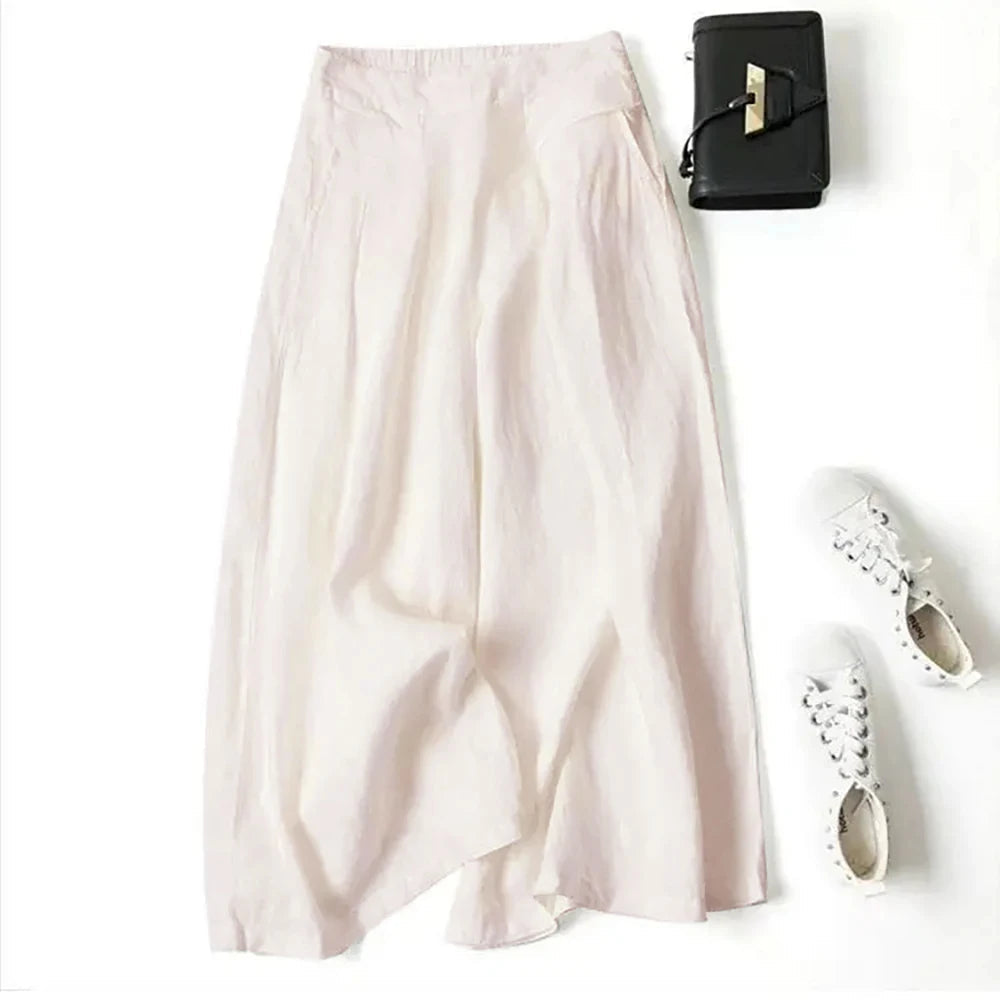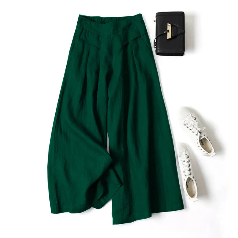 Women's Linen Cotton S-3XL Wide Leg Fashion Designer Pants