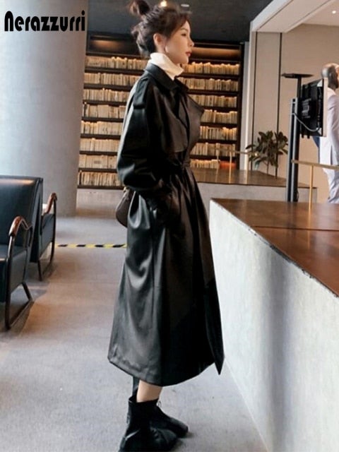 Women's Nerazzurri 2-7XL Designer Leather Trench Coats (Plus Size)