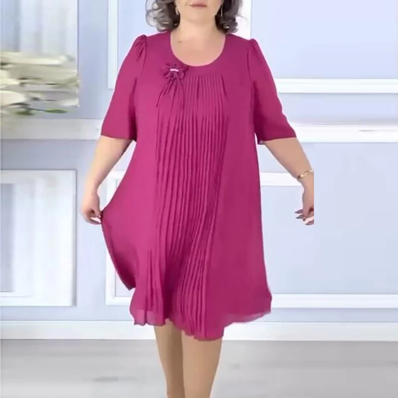 Women's O Neck Pleated 1-5XL Fashion Designer Midi Dresses (Plus Size)