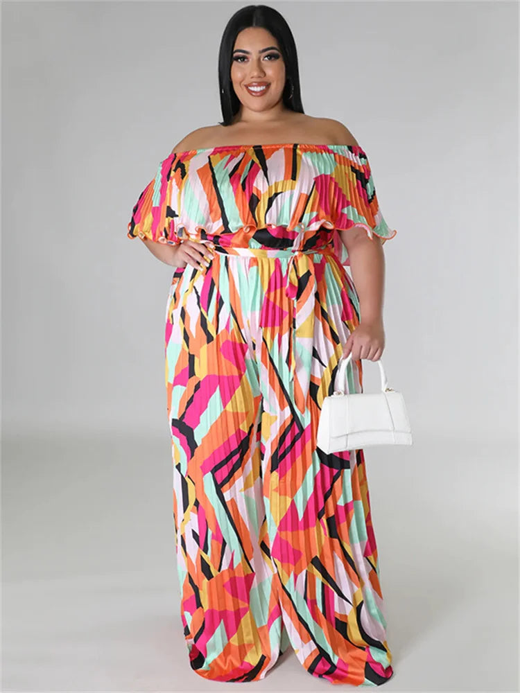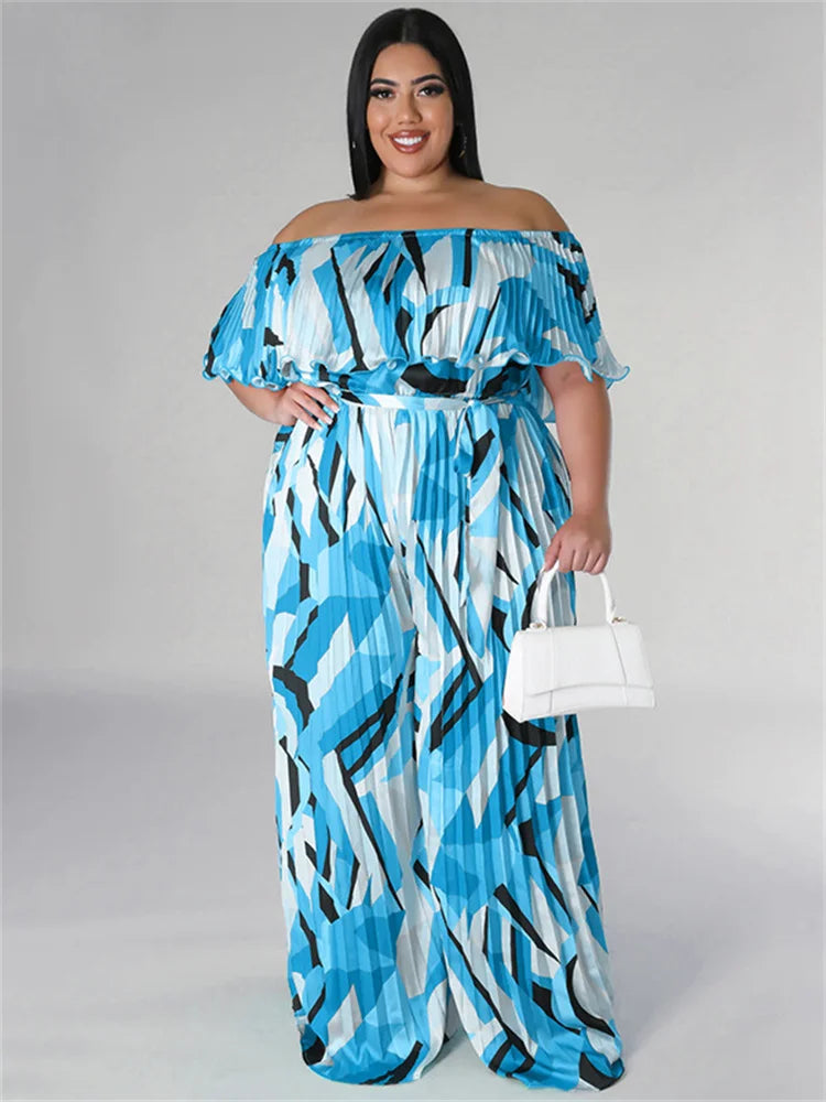 Women's Pleated Wide Leg 4XL Fashion Designer Jumpsuits (Plus Size)