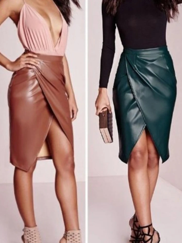 Women's Split S-XL Fashion Designer Faux Leather Skirts (Midi)