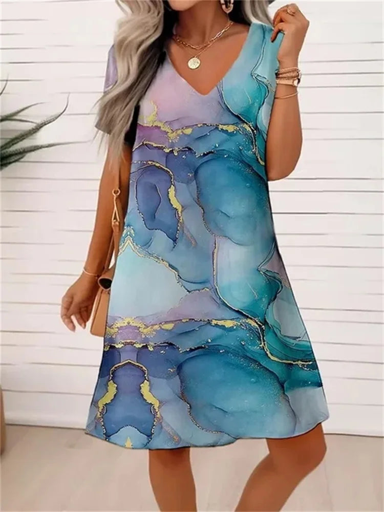 Women's Tie Dye Gradient S-5XL Designer Fashion Short Dresses (Plus Size)